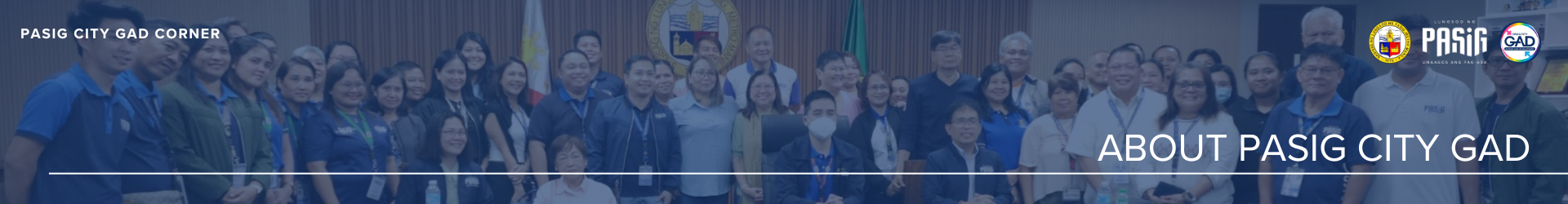 The Pasig City Gender and Development Office is a dedicated office established to promote gender equality and ensure that the city’s programs, projects, and policies are inclusive and responsive to the needs of both men and women. It was created under Pasig City Ordinance No. 07, Series of 2010, and further strengthened by subsequent ordinances and executive orders, including Ordinance No. 07, Series of 2015 and Executive Order No. PCG-11, Series of 2019.